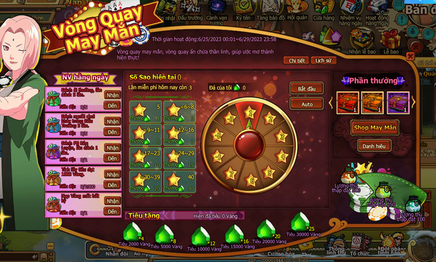 1.Trong thời gian hoạt động hoan thành nv hằng ngày nhận sao may mắn