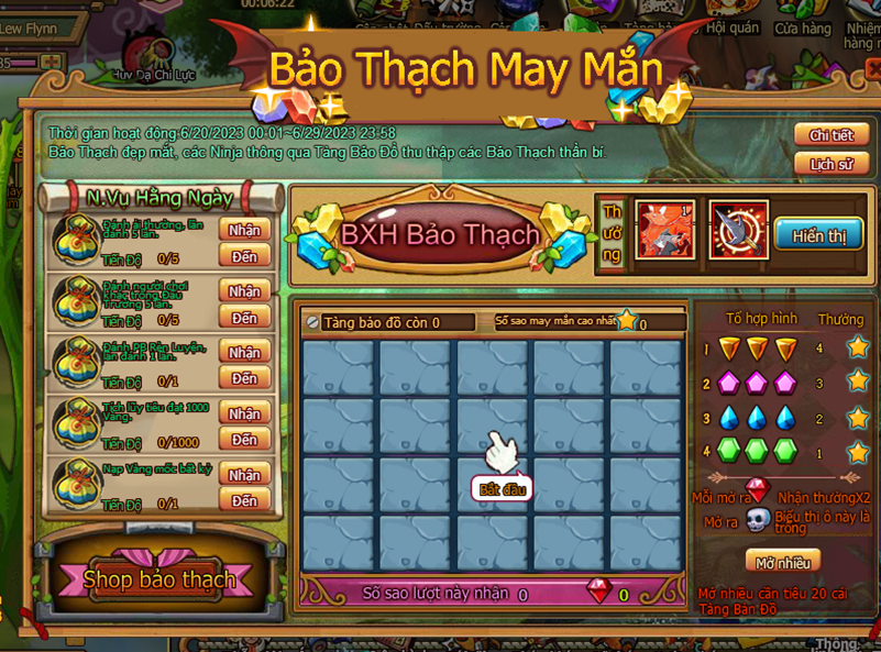 5. Ở Shop Bảo Thạch tiêu Sao May Mắn đổi các loại đạo cụ.