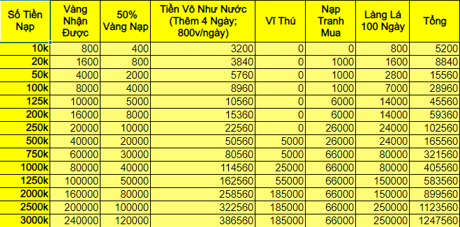 2. Đã sửa mốc nạp nhỏ nhất thành 800 vàng