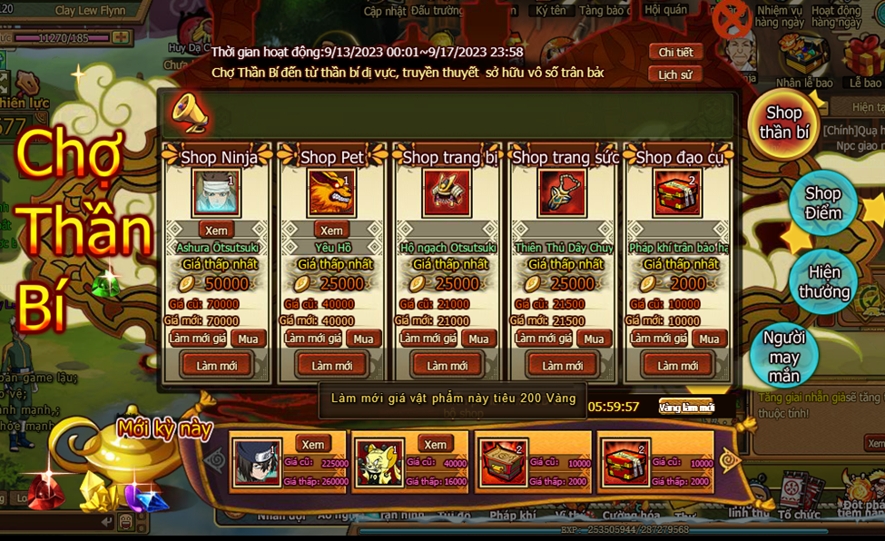 2. Trong chợ thần bí có 5 loại shop , phân biệt gồm shop ninja , shop pet , shop trang bị , shop trang sức và shop đạo cụ , mỗi shop đều bán loại vật phẩm tương ứng