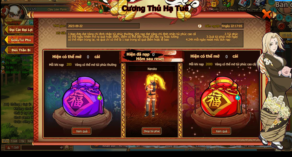 2. Tổng có 3 loại quỹ vàng ,mỗi loại trả lễ khác nhau , có thể nuôi 3 ninja