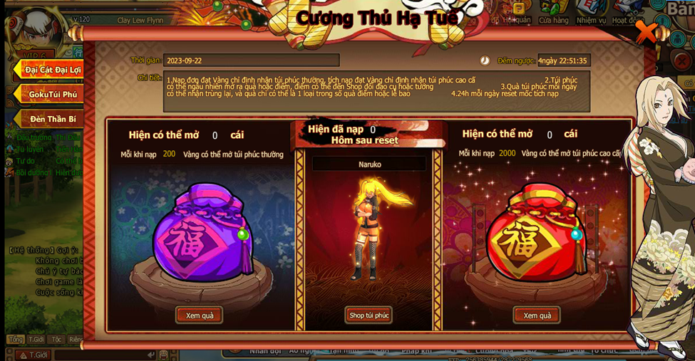 2. Mỗi ngày nạp đạt mốc Vàng tương ứng nhận lễ bao tương ứng , 0h làm mới