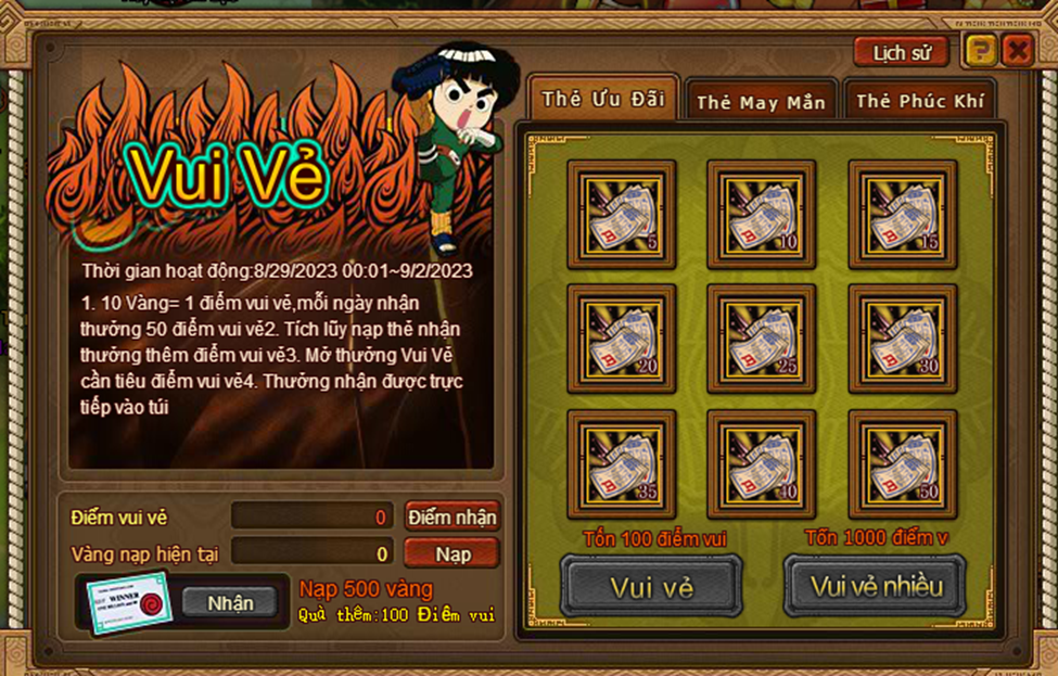 3. Mỗi nạp 1000 Vàng nhận 1 LB Nạp, lặp lại nhận.