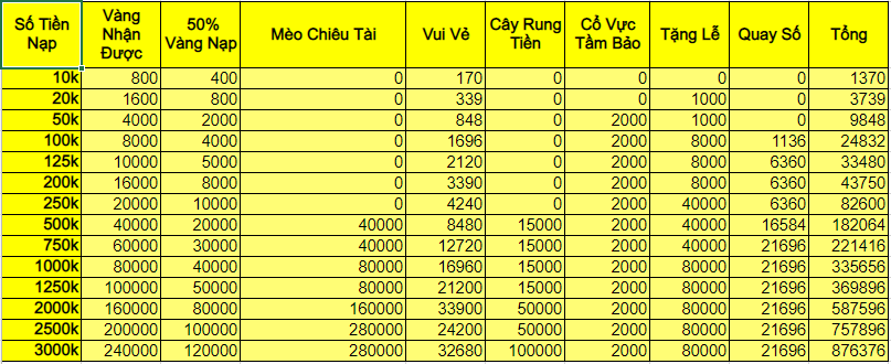 1. Người chơi ở "Tầm Bảo vui vẻ" nạp vàng là nhận điểm