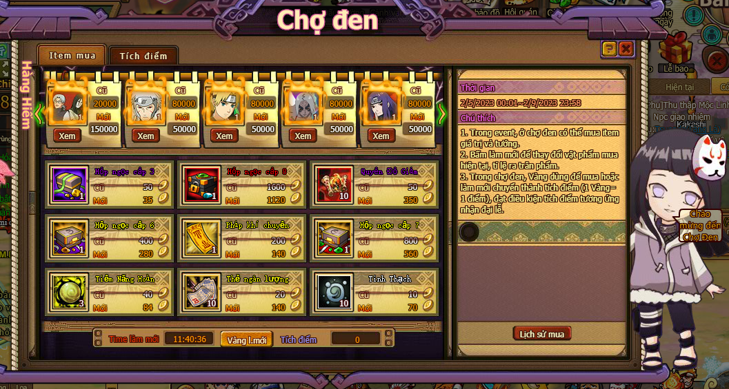 1. Trong event , ở chợ đen có thể mua item giá trị và tướng