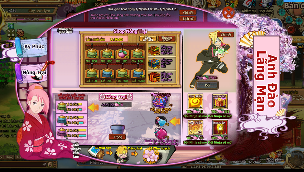 5. Mỗi ngày nhận tối đa 4 loại, cách ngày 0h làm mới, Liên SV thu thập lượng "Huyết Kế" làm mới, trạng thái nhận đại LB Tộc Otsutsuki ở giữa làm mới.