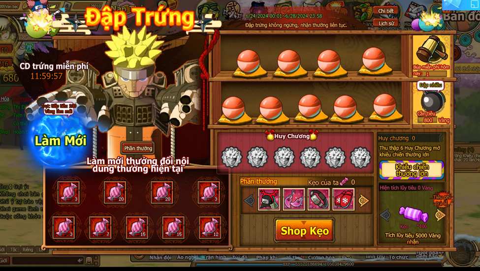 7. Trong quá trình đập trứng nhận Huy Chương , tập hợp đủ 6 Huy Chương mở kiêu chiến thưởng lớn , ở kiêu chiến thưởng lớn nhận lượng lớn kẹo