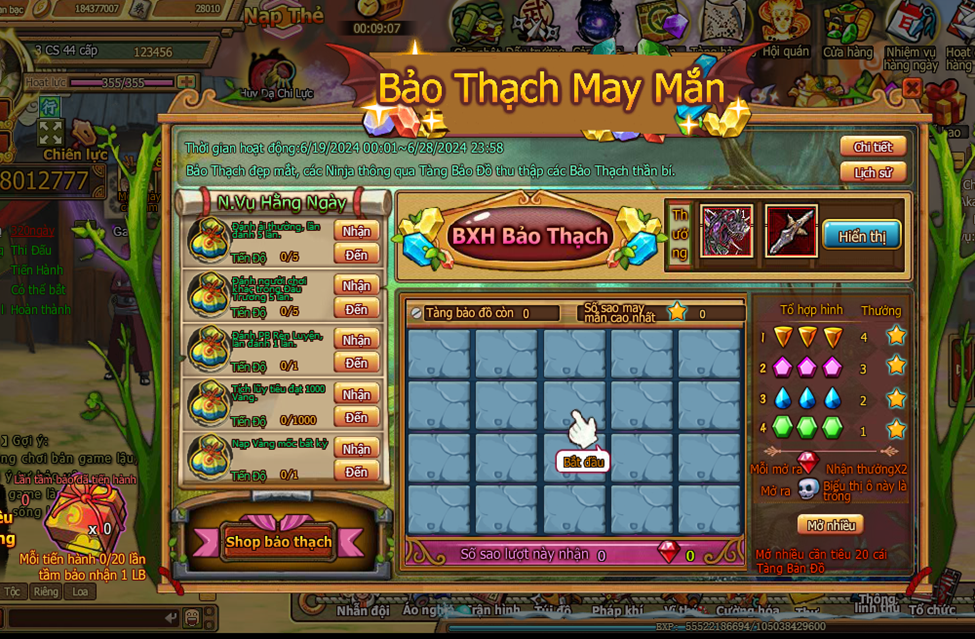 2. Dùng Tàng Bảo Đồ tiến hành mini game Quật Bảo (Tàng Bảo Đồ không đủ dùng Vàng bù đầy, 1 Tàng Bảo Đồ = 50 Vàng).