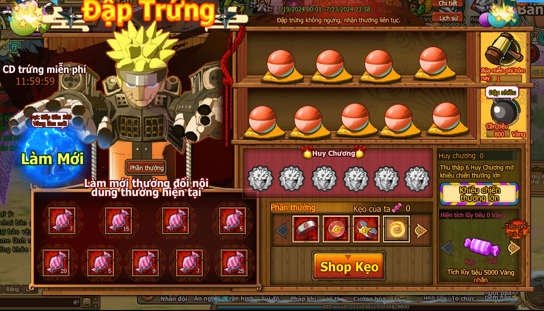 7. Trong quá trình đập trứng nhận Huy Chương , tập hợp đủ 6 Huy Chương mở kiêu chiến thưởng lớn , ở kiêu chiến thưởng lớn nhận lượng lớn kẹo