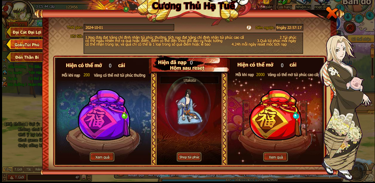 3. Quà túi phúc mỗi ngày có thể nhận trùng lại, và quà chỉ có thể là 1 loại trong số quà điểm hoặc lễ bao.