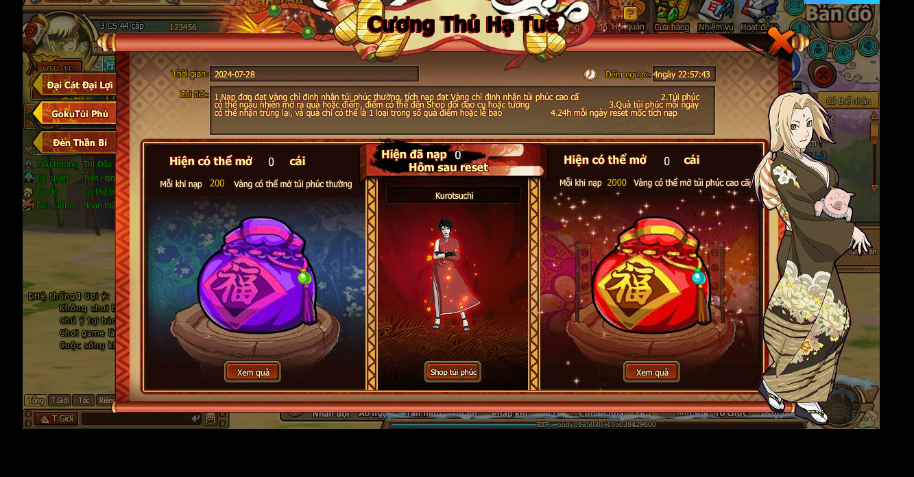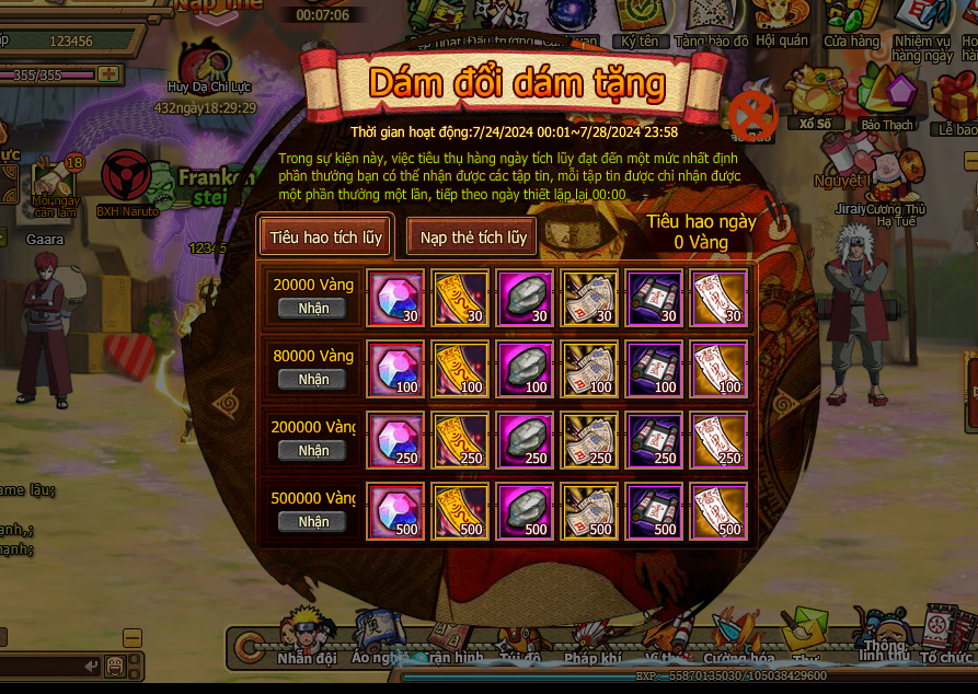 2. Sau khi nạp đủ mốc tương ứng, nhận thưởng Tộc Otsutsuki, nếu chưa nhận thưởng, không thể tăng số lượng Huyết Kế.
