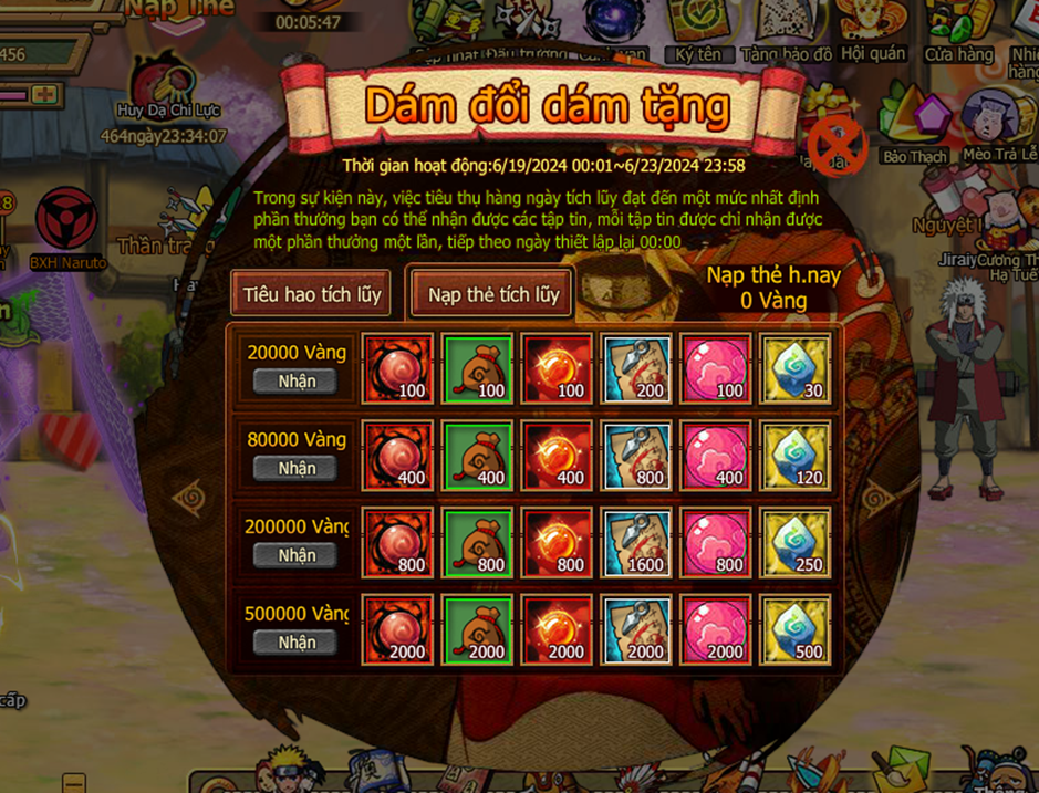 3. Tích lũy nạp đạt 50000 vàng , nhận đại lễ tích lũy nạp
