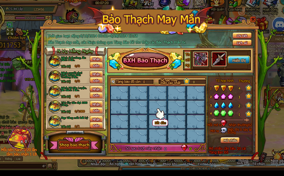 2. Dùng Tàng Bảo Đồ tiến hành mini game Quật Bảo (Tàng Bảo Đồ không đủ dùng Vàng bù đầy, 1 Tàng Bảo Đồ = 50 Vàng).