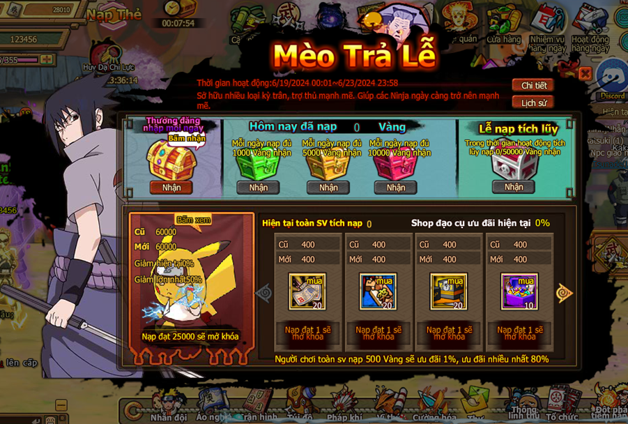 4. Người chơi toan sever nạp đạt 500v ưu đãi 1% , ưu đãi nhiều nhất 80%