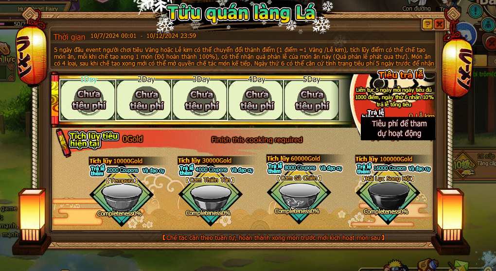 1. 5 ngày đầu event người chơi tiêu Vàng hoặc Lễ Kim có thể chuyển đổi thanh điểm ( 1 điểm = 1 vàng / lễ kim )