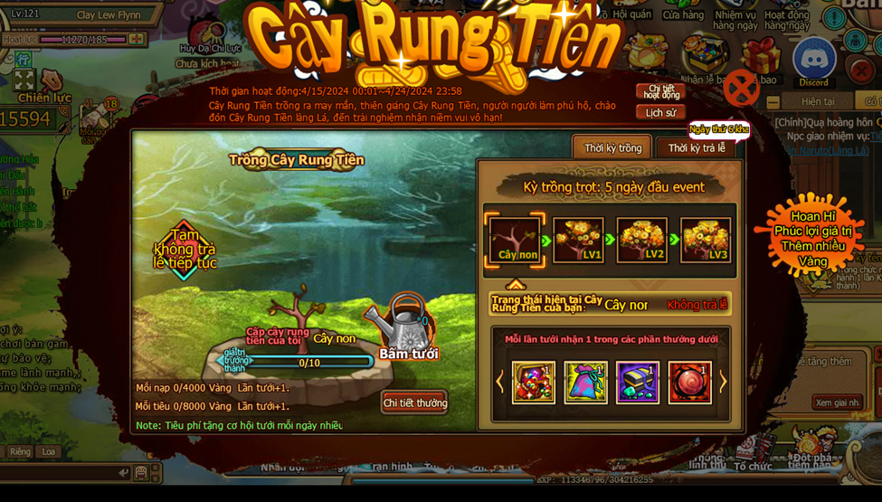 3. Trong thời gian event, người chơi tiêu đủ 1000 vàng nhận 1 lần cơ hội vòng quay lễ kim, mỗi ngày nhiều nhất có thể nhận 20 lần