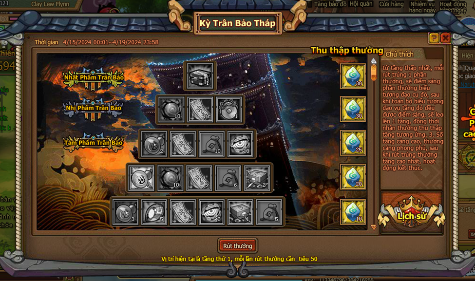 1. Từ tầng thấp nhất, mỗi rút trúng 1 phần thưởng, sẽ điểm sáng phần thưởng biểu tượng đạo cụ đó đều được điểm sáng, sẽ leo lên 1 tầng, đồng thời nhận thưởng thu thập tầng tương ứng.