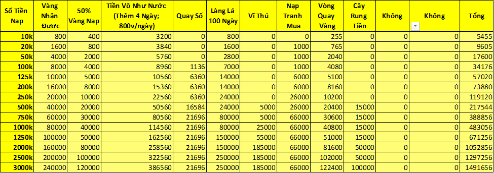 Vàng trả lễ của mỗi mốc mức độ nạp 1 lần đều chỉ tham gia 1 lần