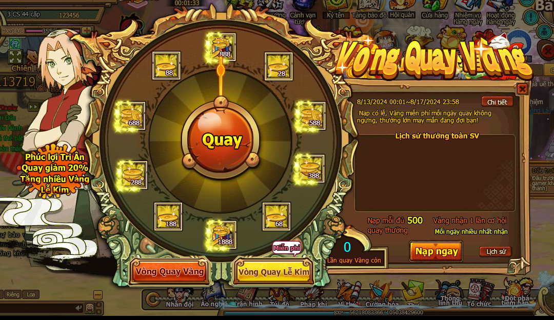 2. Người chơi mỗi ngày có 1 lần miễn phí cơ hội quay (vòng quay lễ kim) , kịp thời sử dụng