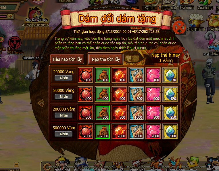 2. Tích lũy nạp thẻ đạt tiêu chuẩn sẽ kích hoạt thưởng miễn phí và quyền mua lễ bao
