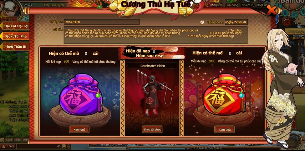 3. Quà túi phúc mỗi ngày có thể nhận trùng lại, và quà chỉ có thể là 1 loại trong số quà điểm hoặc lễ bao.