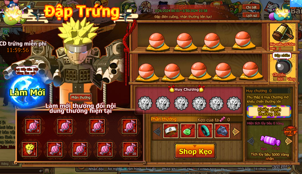 8. Trong quá trình đập trứng nhận kẹo , tiêu kẹo ở shop đổi vật phẩm