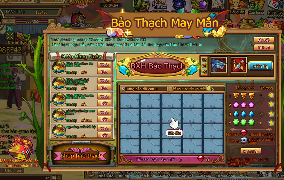 1.Trong thời gian hoạt động hoan thành nv hằng ngày nhận sao may mắn