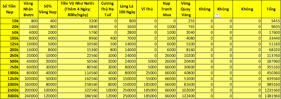 Vàng trả lễ của mỗi mốc mức độ nạp 1 lần đều chỉ tham gia 1 lần