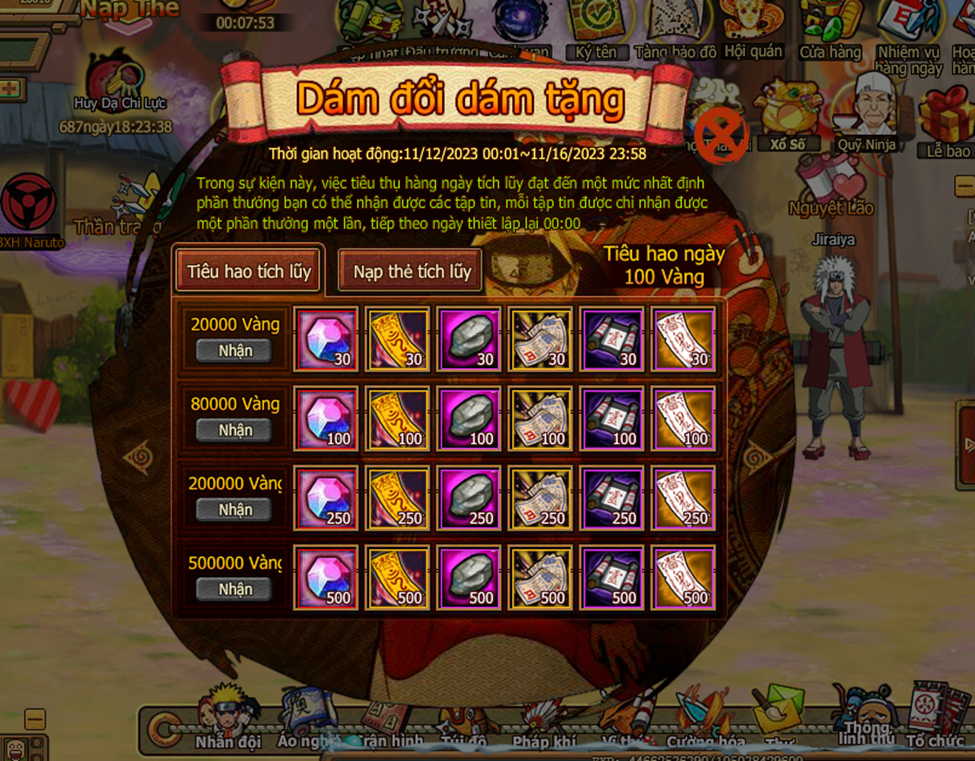 4. Mỗi ninja tăng cấp nhận lễ bao tăng cấp