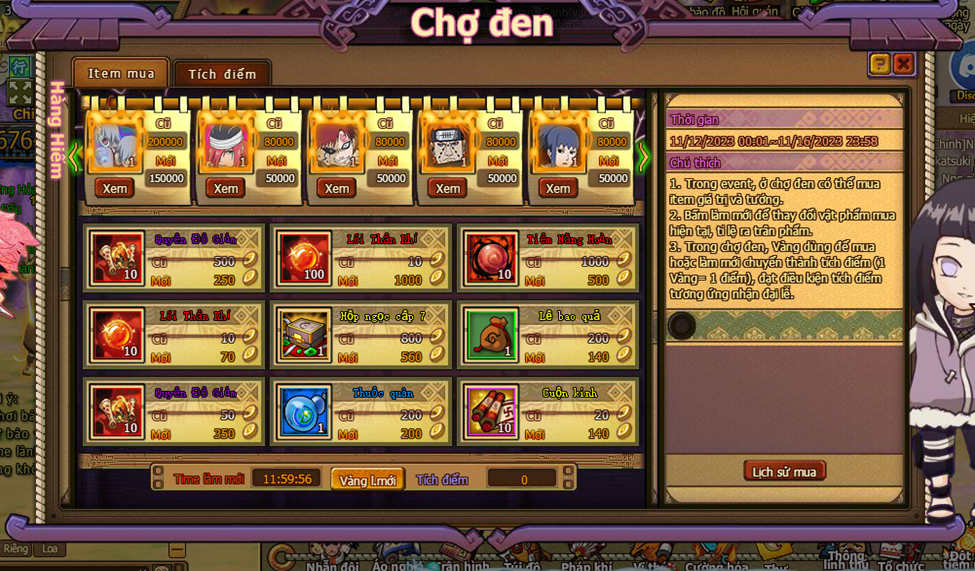 1. Trong event , ở chợ đen có thể mua item giá trị và tướng