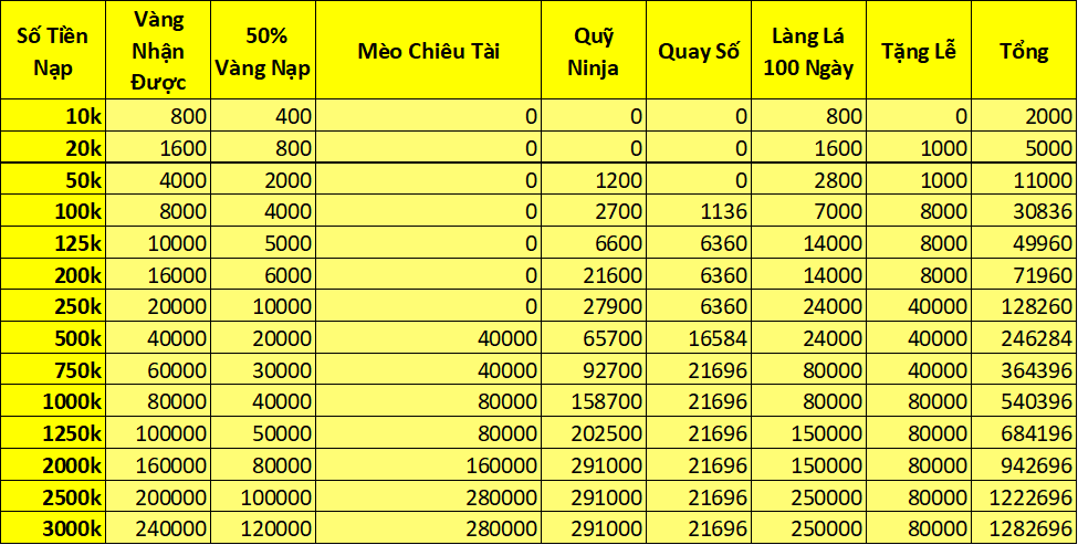 3. Ninja cuôi cấp càng cao , vàng trả lễ càng nhiều