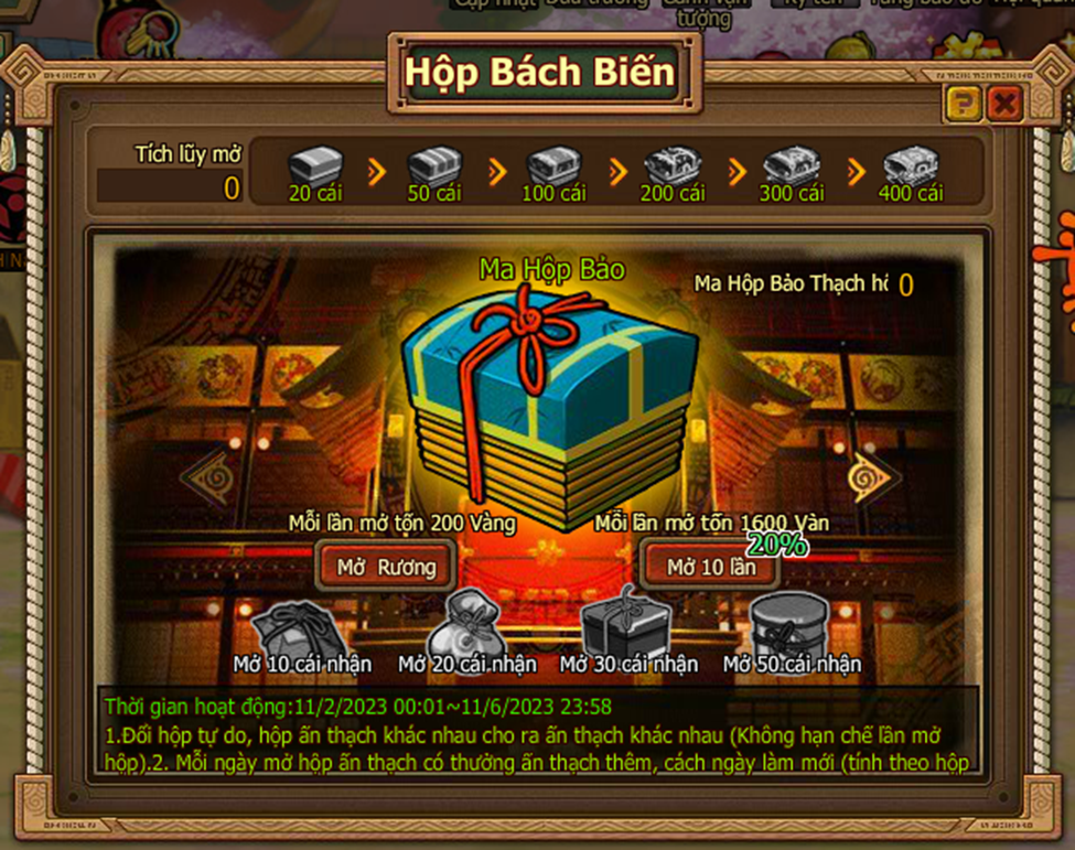 3. Mở các loại hộp tổng tích lũy nhận hộp thưởng tích lũy Bách biến ma hộp.