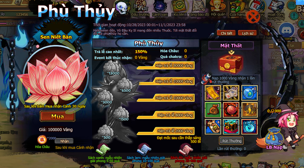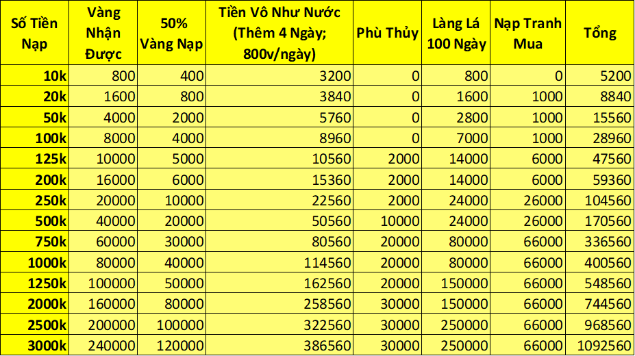 3. Mỗi nạp 1000 Vàng nhận 1 LB Nạp, lặp lại nhận.