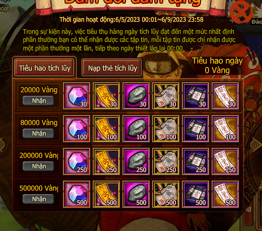 Vàng trả lễ của mỗi mốc mức độ nạp 1 lần đều chỉ tham gia 1 lần