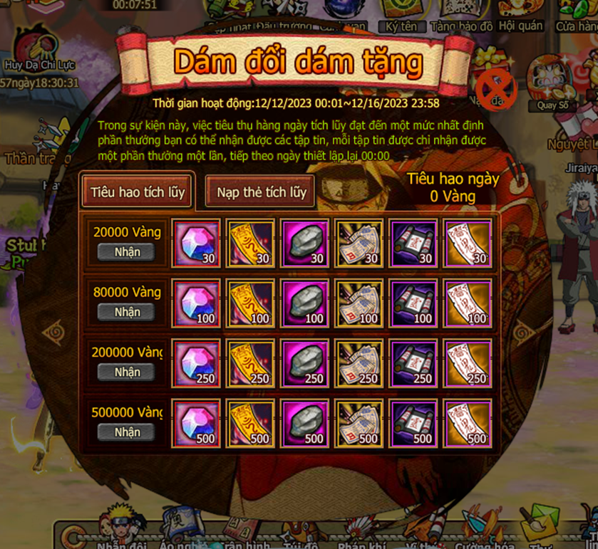 Trong sự kiện này , việc tiêu thụ hàng ngày tích lũy đạt đến một mức nhất định phần thưởng bạn có thể nhận được các tệp tin , mỗi ngày tập tin chỉ nhận được 1 phần thưởng một lần , tiếp theo ngày thiết lập lại 00:00