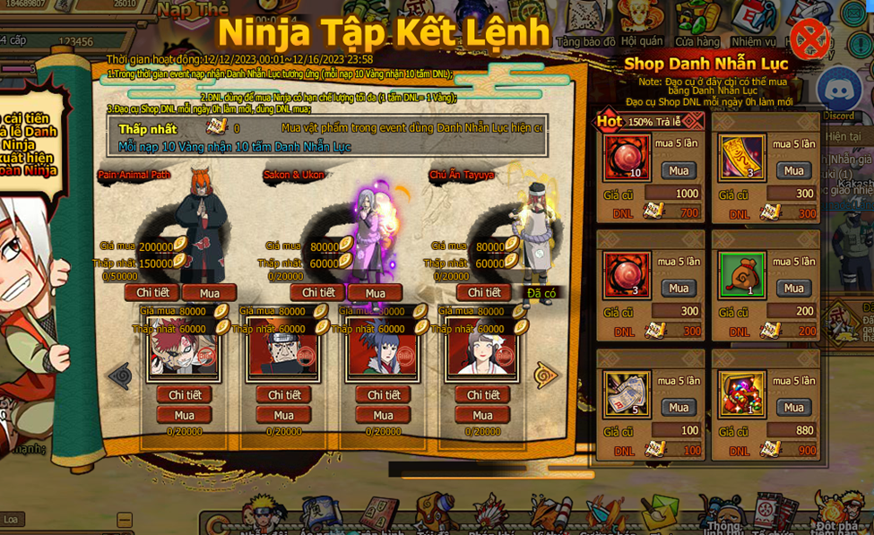 2.DNL dùng để mua ninja có hạn chế lượng tối đa ( 1 tấm DNL bằng 1 vàng )