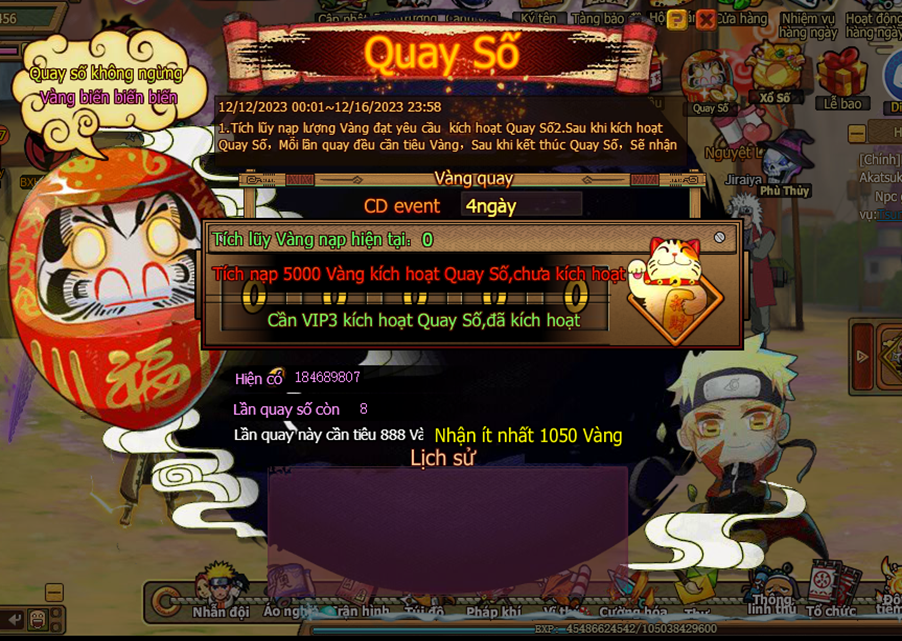 1. Tích lũy nạp lượng vàng đạt yêu cầu kích hoạt Quay Số.
