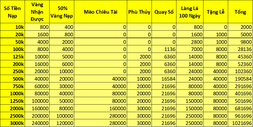 Vàng trả lễ của mỗi mốc mức độ nạp 1 lần đều chỉ tham gia 1 lần