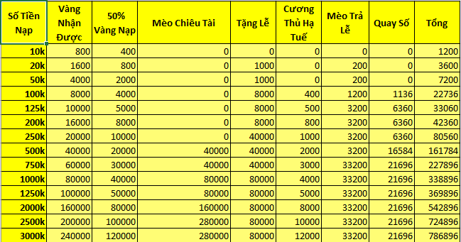 Lưu Ý : nạp 1 lần 200.000 vàng mới nhận cả 3 con mèo