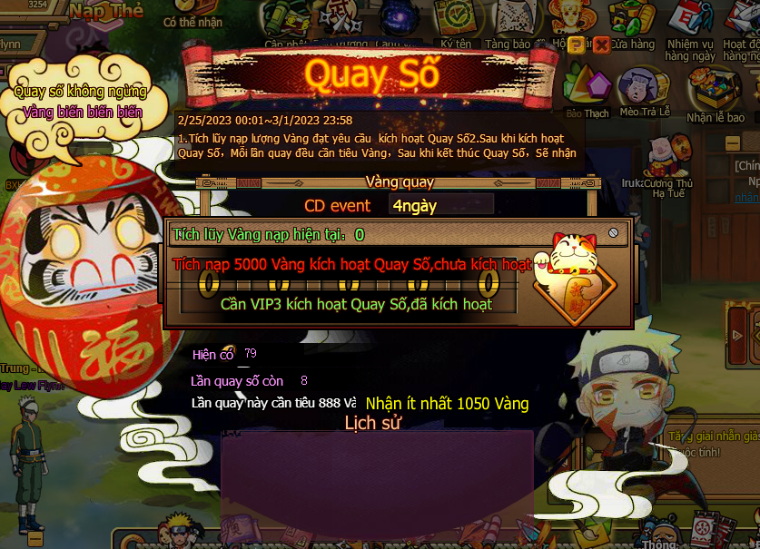 1. Tích lũy nạp lượng vàng đạt yêu cầu kích hoạt Quay Số.