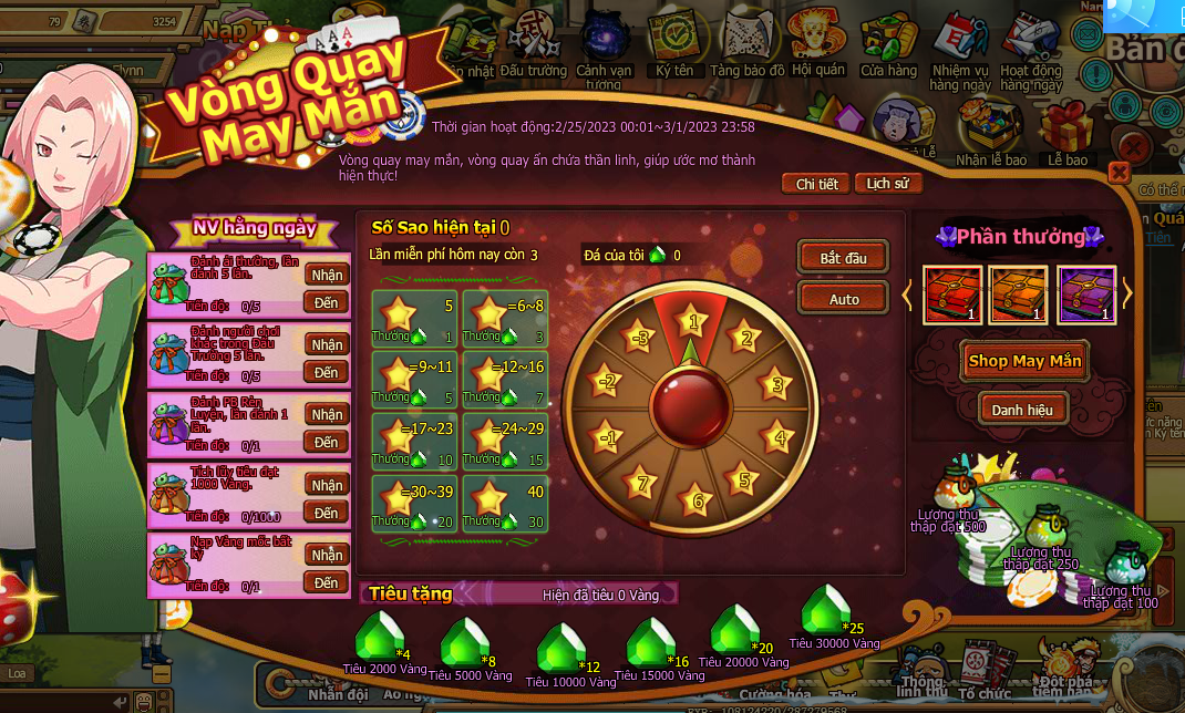 1.Trong thời gian hoạt động hoan thành nv hằng ngày nhận sao may mắn