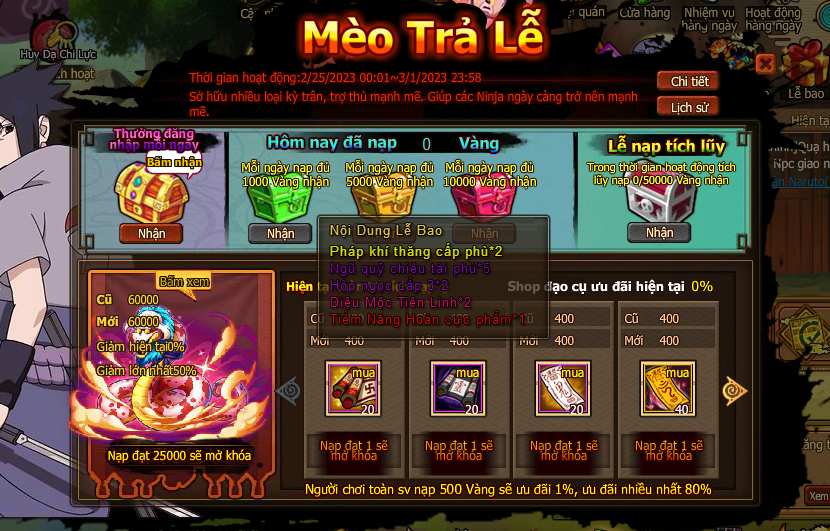 2. Mỗi ngày nạp đạt mốc Vàng tương ứng nhận lễ bao tương ứng , 0h làm mới