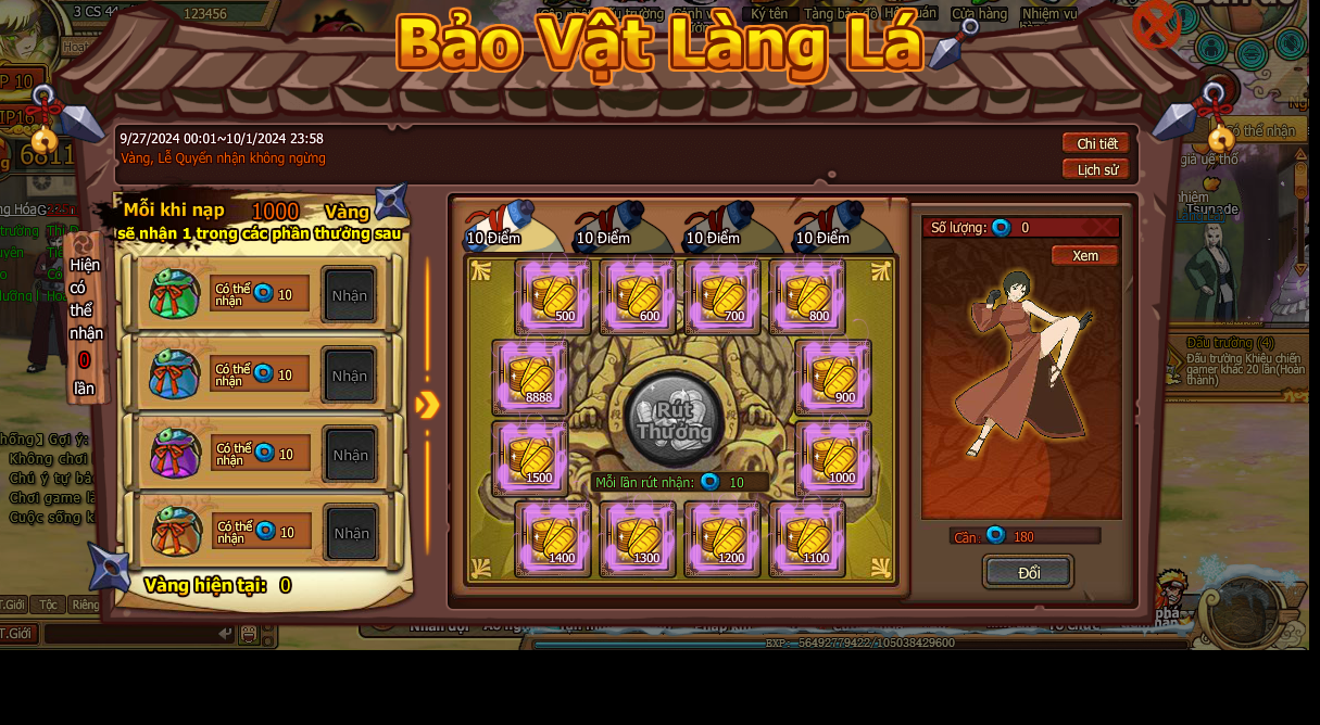 Note : Trước và sau 15 phút thời gian phát thưởng , giải thưởng tạm không làm mới nữa . Mỗi người chơi trong thời gian event chỉ có thể tham dự 1 lần giải thưởng may mắn trả lễ Vàng.