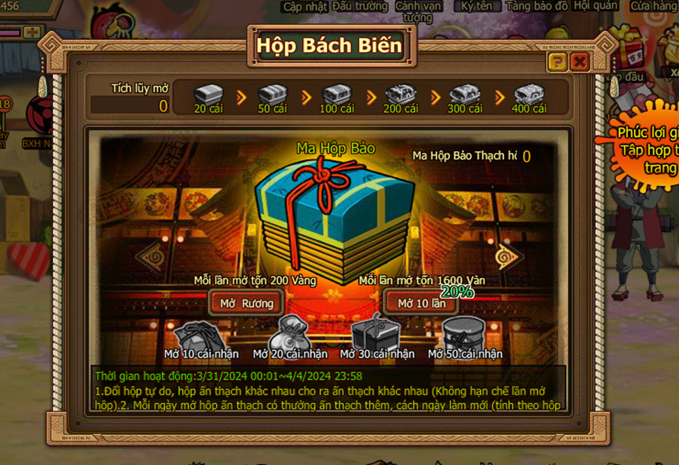 3. Mở các loại hộp tổng tích lũy nhận hộp thưởng tích lũy Bách biến ma hộp.