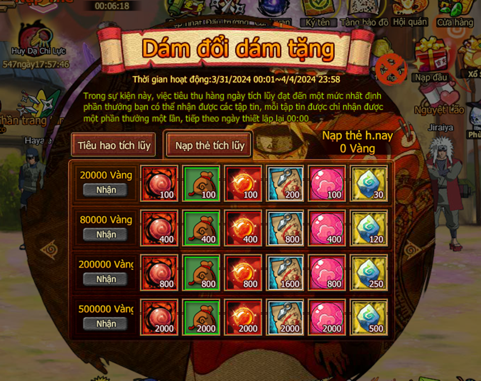 Vàng trả lễ của mỗi mốc mức độ nạp 1 lần đều chỉ tham gia 1 lần