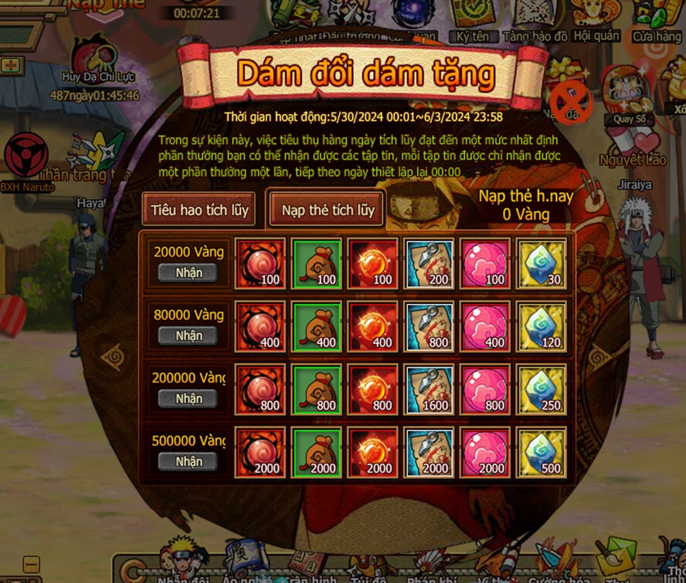 Trong sự kiện này, việc tiêu thụ hàng ngày đạt đến một mức nhất định phần thưởng bạn có thể nhận được các tập tin, mỗi tập tin được chỉ nhận được một phần thưởng một lần, tiếp theo ngày thiết lập lại 00:00.