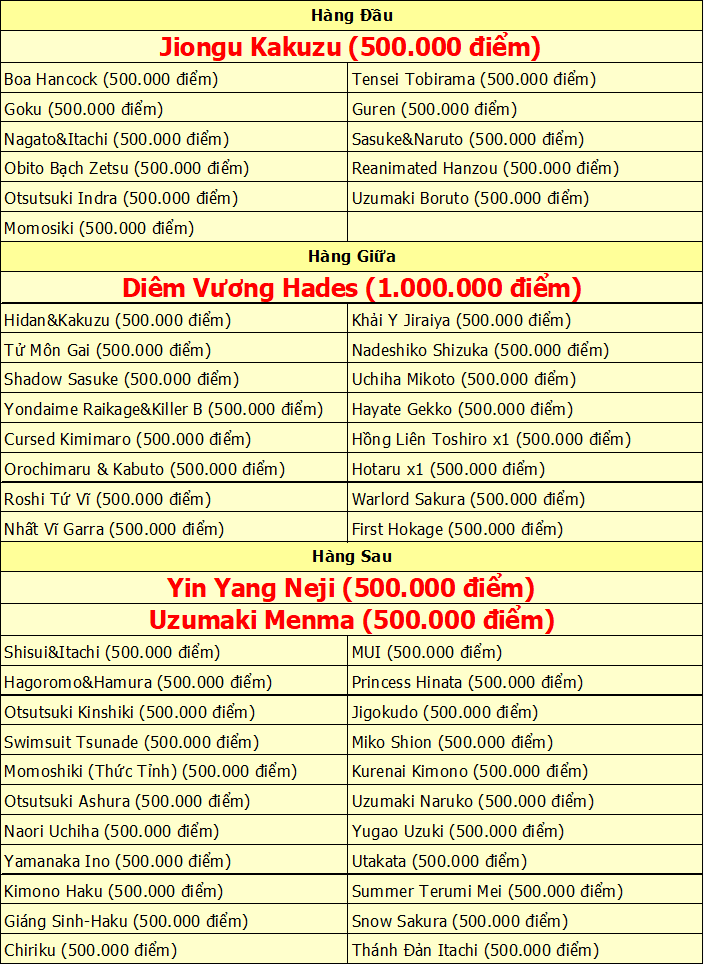 - Trang Bị Uchiha ( 500.000 Điểm ) 6 món
