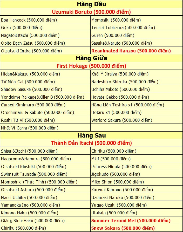 - Trang Bị Guren ( 500.000 điểm ) 6 món