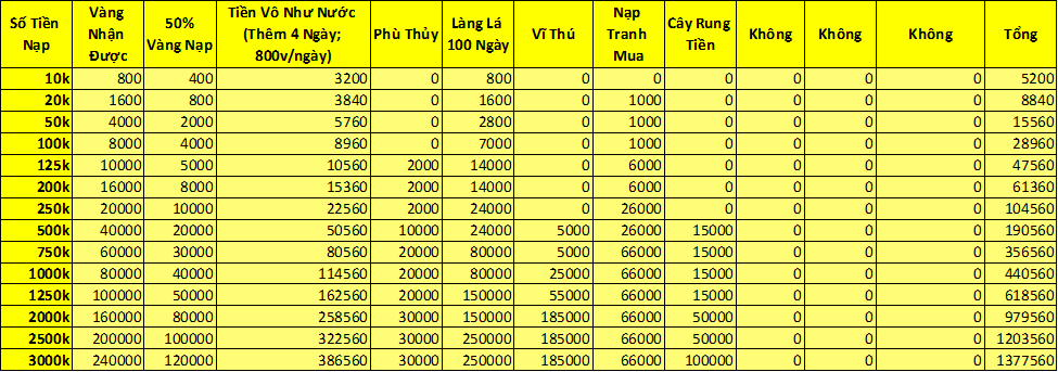 Vàng trả lễ của mỗi mốc mức độ nạp 1 lần đều chỉ tham gia 1 lần