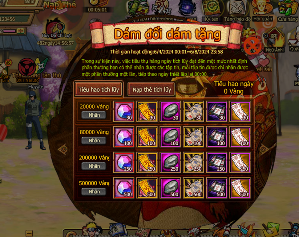 4. Mỗi ninja tăng cấp nhận lễ bao tăng cấp